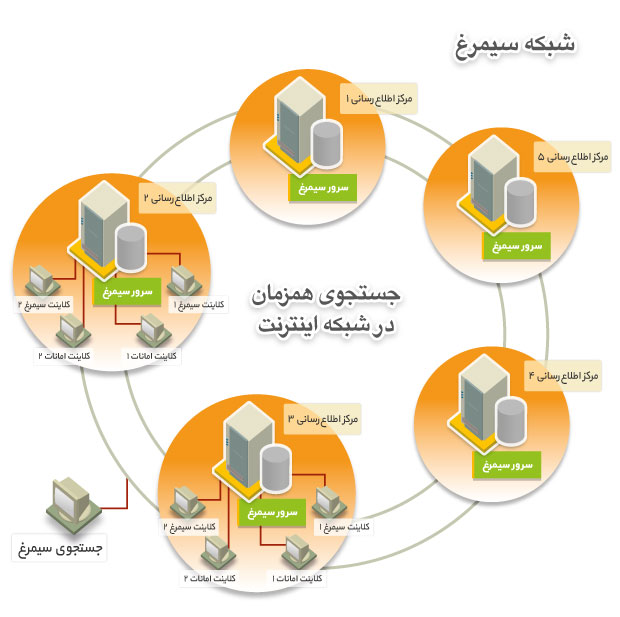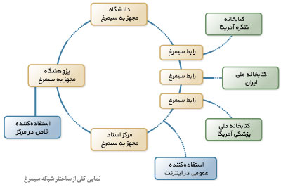 با تکیه بر پشتوانه قوی نرمافزار سیمرغ در سازگاری با اینترنت و فضای مجازی، ارتباط تمامی میزبانها را با یکدیگر برقرار کرده و شبکهای بهنگام و منسجم از تمامی مراکز مجهز به سیمرغ ایجاد کردهاست. از آنجا که این شبکه، یک شبکه بهنگام بوده و تمامی اطلاعات را مستقیماً از مراکز اطلاعرسانی بزرگ و مرجع کشور به دست استفاده کنندگان میرساند، یکی از محبوبترین راههای به دست آوردن منابع اطلاعاتی برای کاربران به شمار میرود.